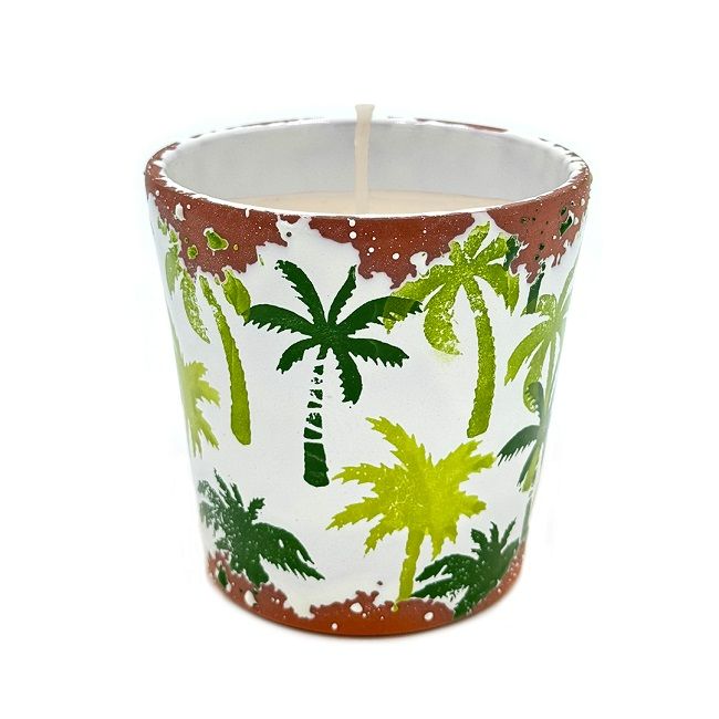 Handgefertigte Duftkerze aus pflanzlichem Kerzenwachs in einem wunderschön handbemalten Keramiktopf.